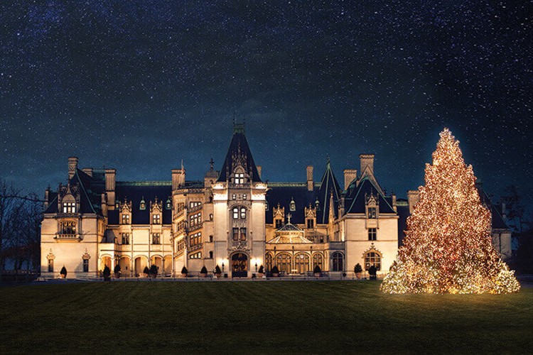 The Biltmore Estate features extensive Christmas decorations, tours, and special events, such as Candlelight Christmas Evenings