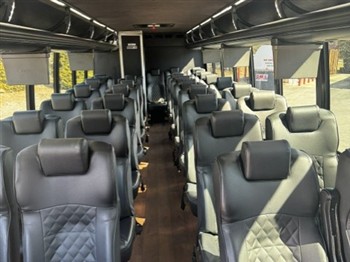 Restroom, 110 outlets, rear storage, overhead lighting, under floor luggage storage, video & more
